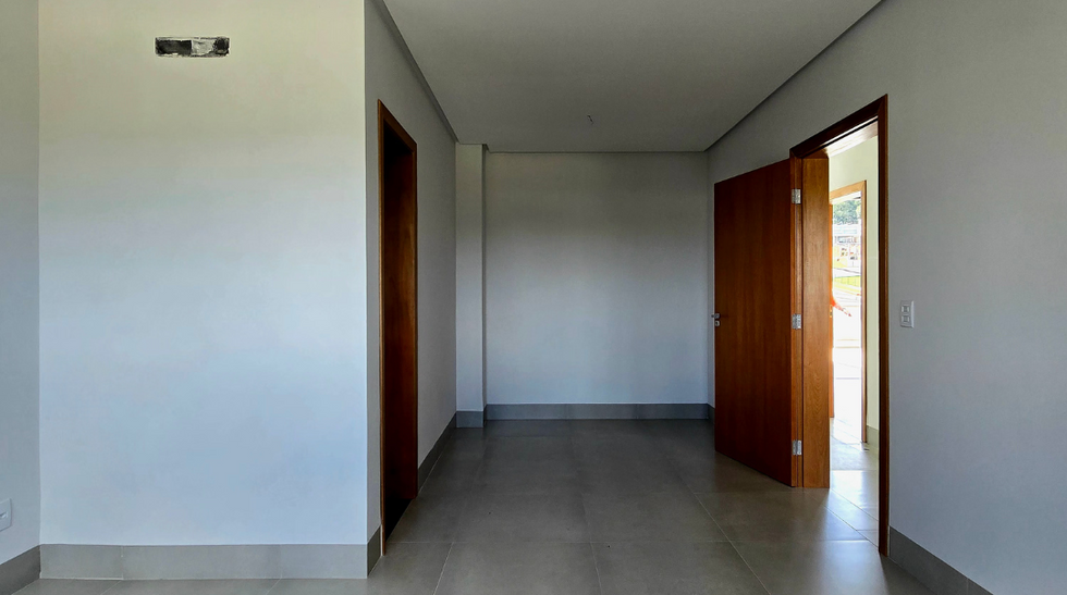 Com quatro suítes plenas, incluindo uma suíte master com closet, o imóvel valoriza o conforto e a privacidade. A cozinha, a área gourmet e a sala de estar são integradas em um ambiente amplo com pé-direito duplo, proporcionando elegância e iluminação natural. As esquadrias na cor preta, linha Supreme, reforçam o visual contemporâneo da residência.