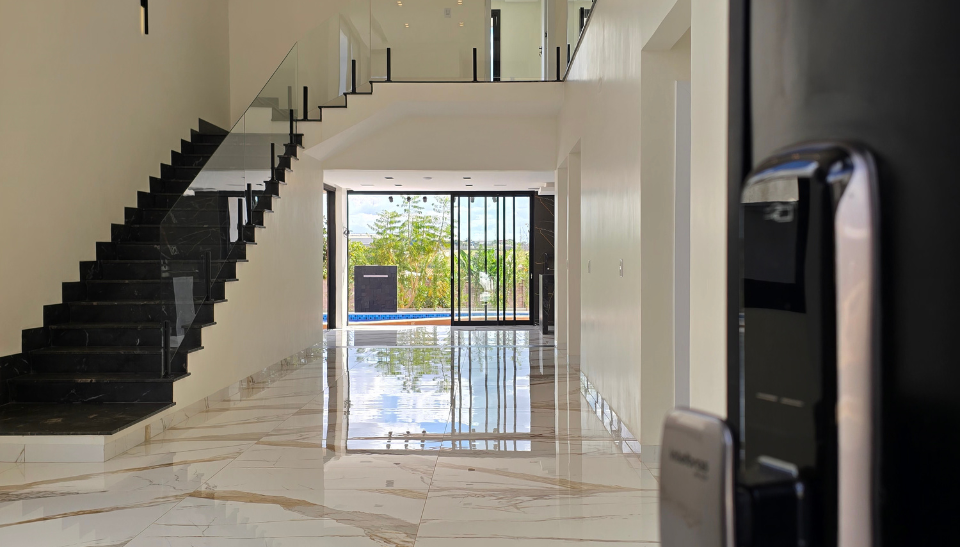 Um dos pontos que com certeza podemos evidenciar é sua área gourmet, onde se integra a cozinha com todo o espaço de churrasco e banho e para completar a festa, seu sistema de som JBL. Ao andar pela casa podemos evidenciar os acabamentos e detalhes de alta qualidade que foram utilizados no projeto como esquadrias em alumínio, fechadura eletrônica e um projeto luminotécnico de cair o queixo.